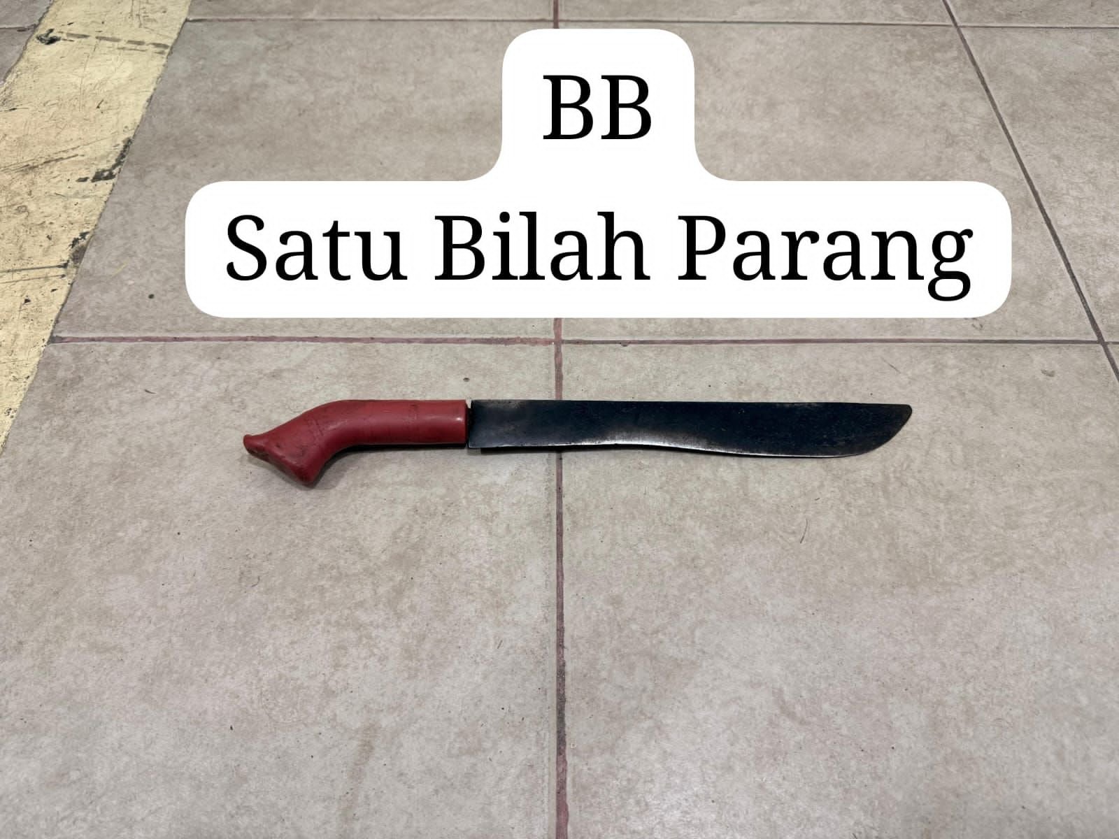 * Sebilah parang bergagang merah sepanjang 44 cm