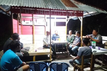 KompasNusantara|Bengkalis – Babinsa Koramil 01/Bengkalis Sertu Mustaqim dan Pratu Govi melaksanakan kegiatan Patroli Siskamling Bersama Kepala Dusun Mekarsari, Ketua Karang Taruna, Pemuda dan M...