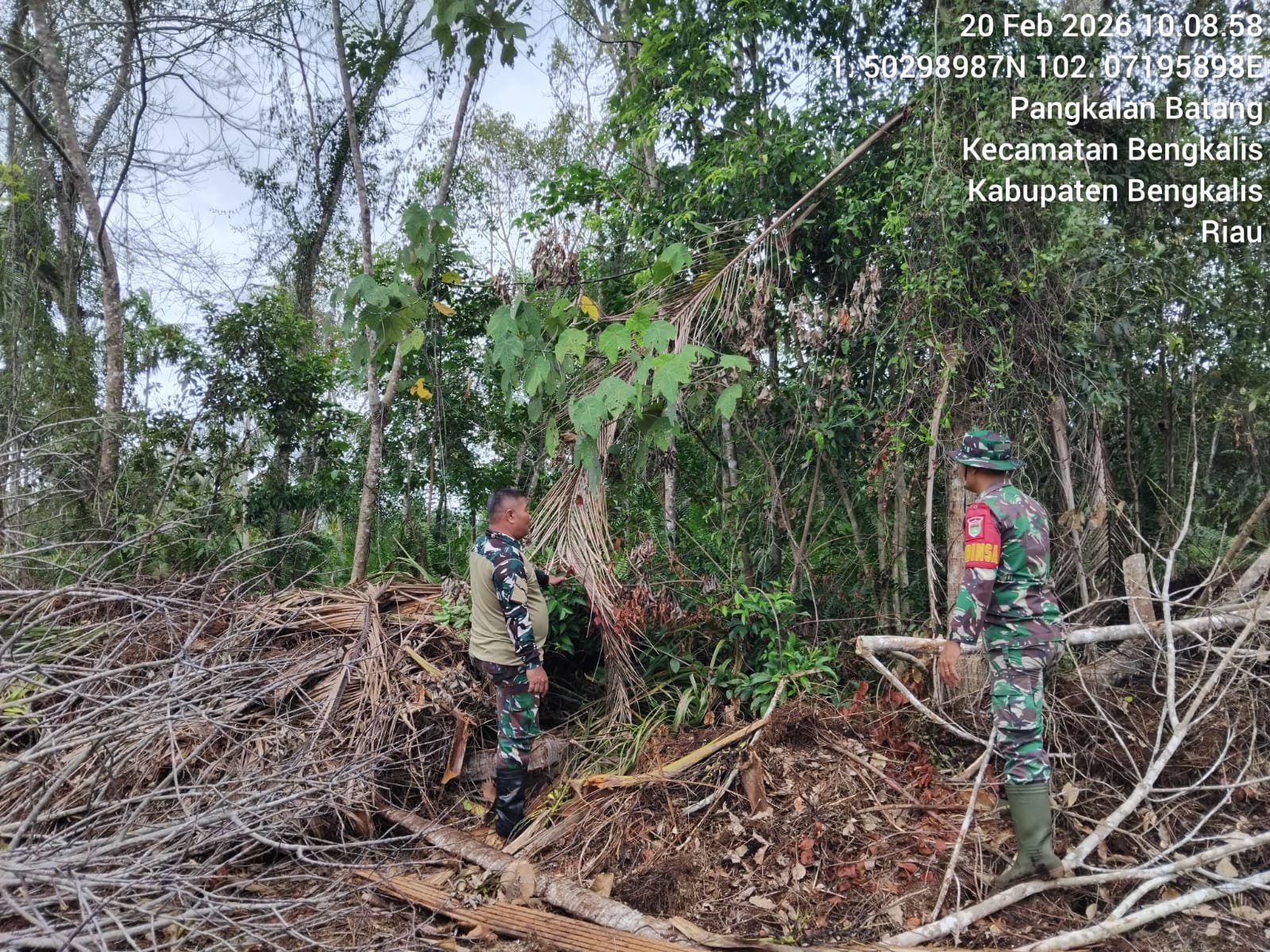 Kompasnusantara.my.id|Bengkalis – Babinsa Koramil 01/Bengkalis Sertu Syafrizal dan Kopda Limbong melaksanakan patroli dan sosialisasi Karhutla (Kebakaran hutan dan lahan) di Desa Pangkalan Batang Kec. Bengkalis Kab. Bengkalis. Jum’at pukul 10.20 Wib, (20/2/2026).