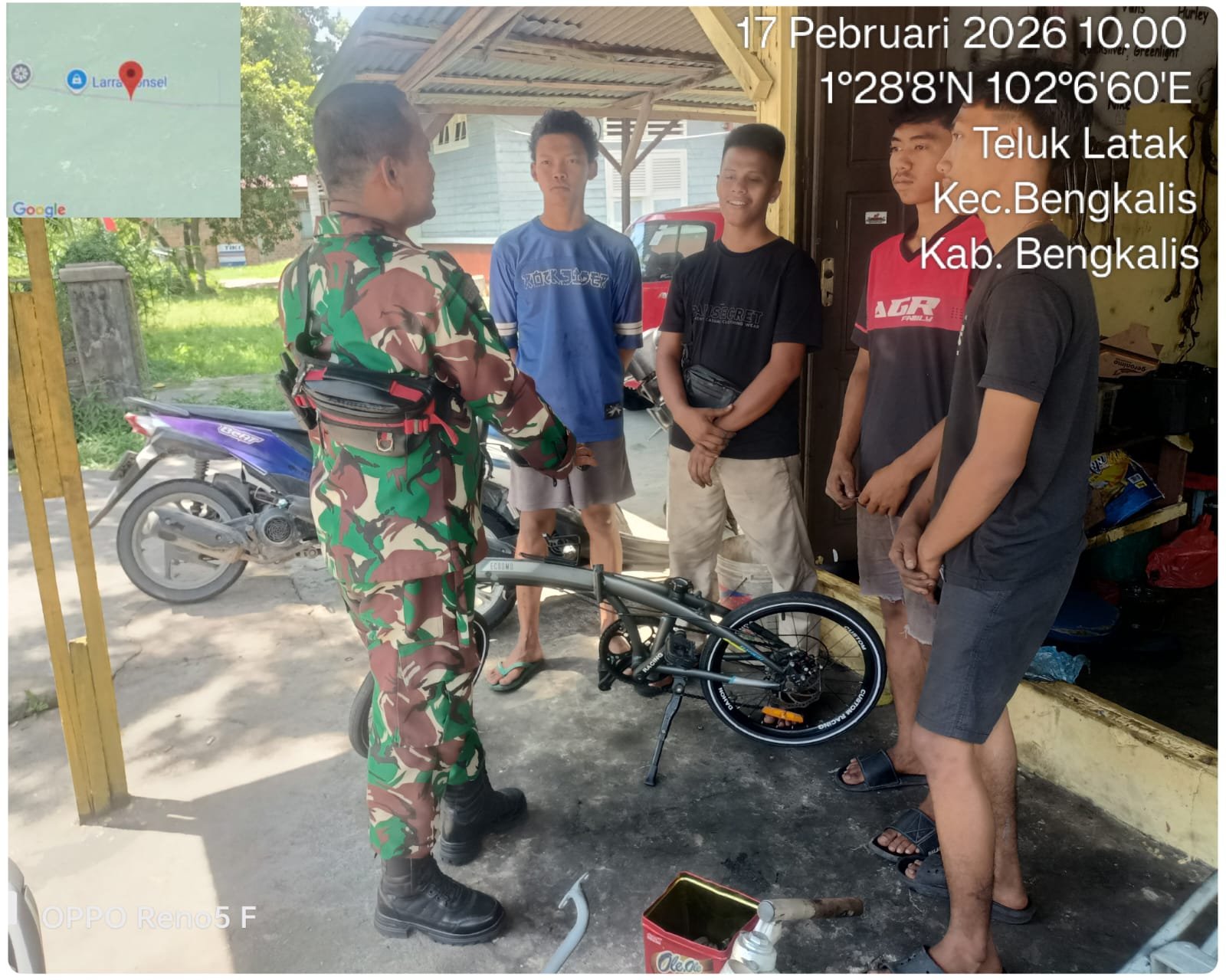 Kompasnusantara.my.id|Bengkalis – Babinsa Koramil 01/Bengkalis Serda M.H.Gunawan melaksanakan kegiatan komsos bersama masyarakat binaan Desa Teluk Latak di kampung Pancasila khususnya di Kec. Bengkalis Kab. Bengkalis. Selasa pukul 10.00 Wib, (17/2/2026).