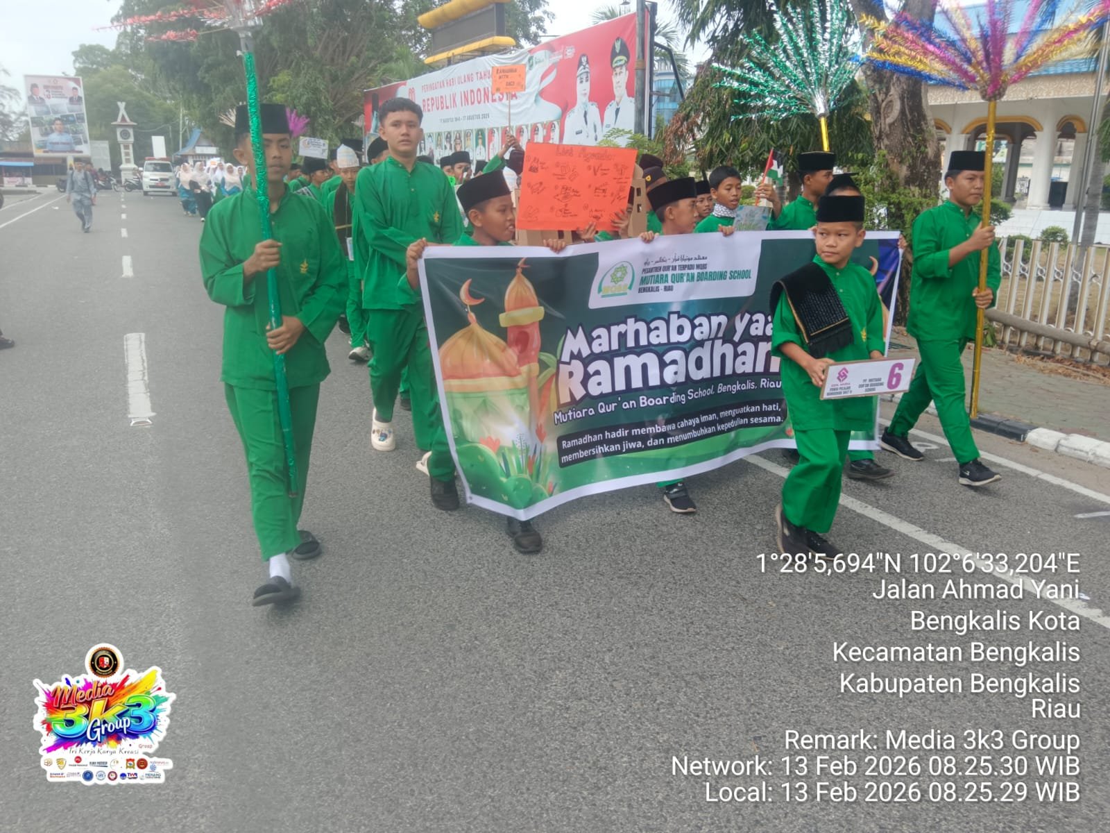 Peserta yang mengikuti Pawai Pelajar Sambut Ramadhan dari mulai tingkat SD, SMP dan SMA sederajat, dengan berbagai Pondok Pesantren yang ada di Bengkalis, Seperti Ponpes Mutiara Qur’an Boarding School dan SMP IT Ibu Harapan.