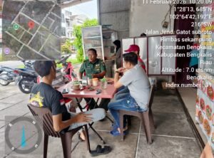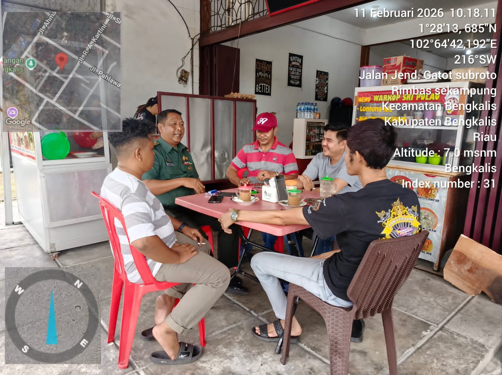 Kompasnusantara|Bengkalis – Babinsa Koramil 01/Bengkalis Peltu Dedek Irwanto melaksanakan kegiatan komsos bersama masyarakat binaan dan Staf Kelurahan di Kampung Pancasila khususnya di Kelurahan Rimbas sekampung Kec. Bengkalis Kab. Bengkalis. Rabu pukul 10.00 Wib, (11/2/2026).