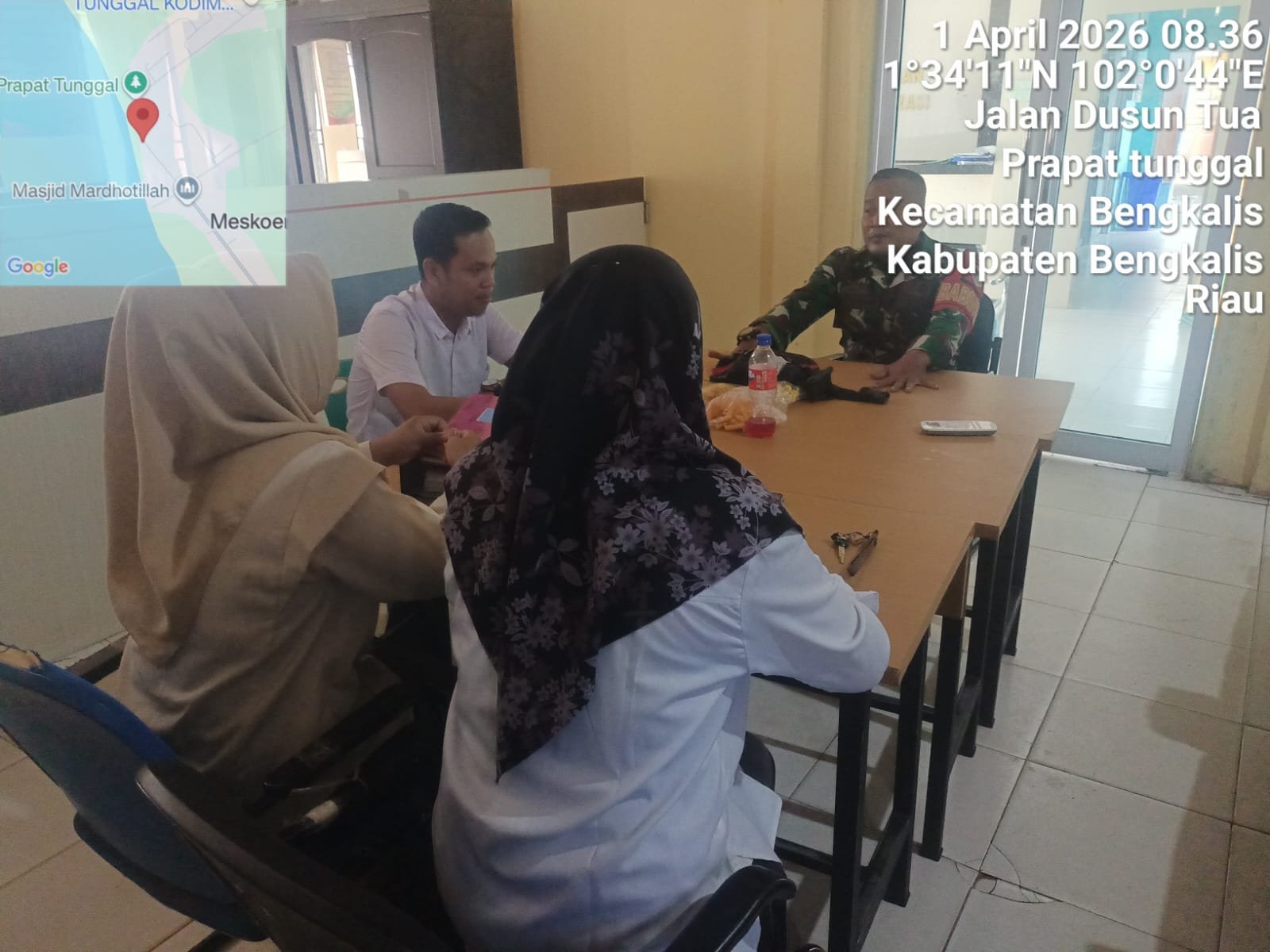 Kompasnusantara.my.id|Bengkalis – Babinsa Koramil 01/Bengkalis Serda M.H.Gunawan melaksanakan kegiatan komsos bersama masyarakat binaan Desa Prapat Tunggal di Kampung Pancasila khususnya di Kec. Bengkalis Kab. Bengkalis. Rabu pukul 09.00 Wib, (1/4/2026).